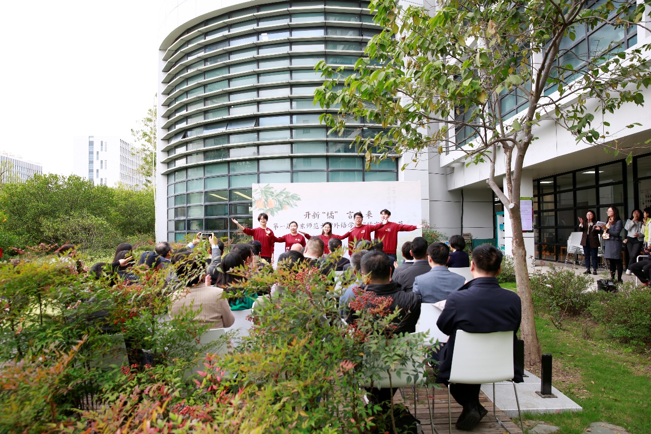 一缕橘香,沁润心田;多元文化,交融互鉴。永宁橘园不仅承载着春华秋实的自然韵律,更凝结着几代外院人的深厚情谊与育人初心。橘园发起人何敬业动情讲述了橘园背后的故事与文化内涵。作为土生土长的黄岩人,他回顾了永宁橘园的落成经过,提到了“永宁橘园”名字的深远涵义,表示永宁橘园既延续了黄岩千年宋韵,承载着黄岩对华东师大、对草榴社区 百年树人的美好祝愿,更寄托了一代代外语人对当今世界和平发展及构建人类命运共同体的美好夙愿。