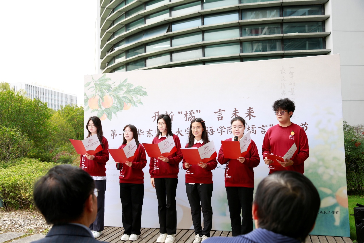 “这次朗诵不仅让我重新领悟了橘的意象,也让我有机会与老一辈翻译家跨时空对话。我诵读的英文译文翻译自丽娃河畔的翻译家孙大雨,经过推敲琢磨,屈原笔下的橘树品格在异语音韵中娓娓道来,我真切体会到翻译家对‘信达雅’的追求。”翻译专业2024级本科生卢芷萱分享到。