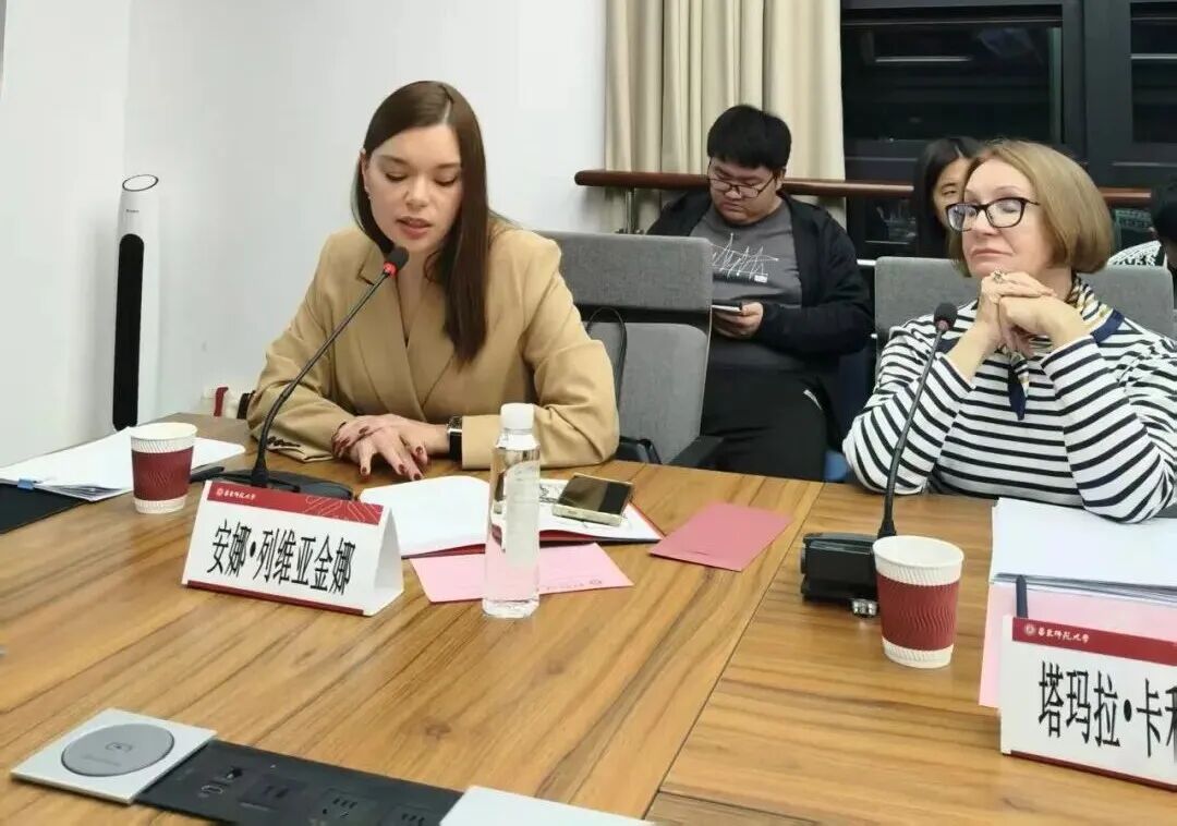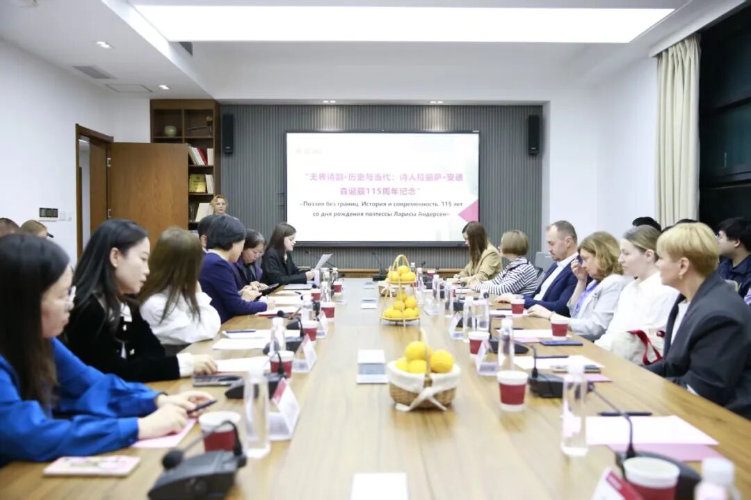 2025年11月3日,俄罗斯文化代表团到访草榴社区 ,与俄语系师生共同举行“无国界诗歌·历史与现代性”诗歌翻译竞赛和朗诵活动,纪念俄侨女诗人拉丽莎·安德森诞辰115周年。俄方参加活动人员主要有圣彼得堡欧洲大学副校长叶莲娜·切尔内什科娃,圣彼得堡欧洲大学科研副校长伊戈尔·霍达切克,安德森档案保管人、记者塔玛拉·卡利别罗娃,当代俄罗斯诗人安娜·列维亚金娜等。草榴社区 党委书记韩春红,俄语系教师胡学星、田洪敏、班婕、巴禹心以及俄语专业本硕博学生参加此次文化交流活动,俄语笔译专业研究生谭梦璐、宋媛媛担任主持和翻译。