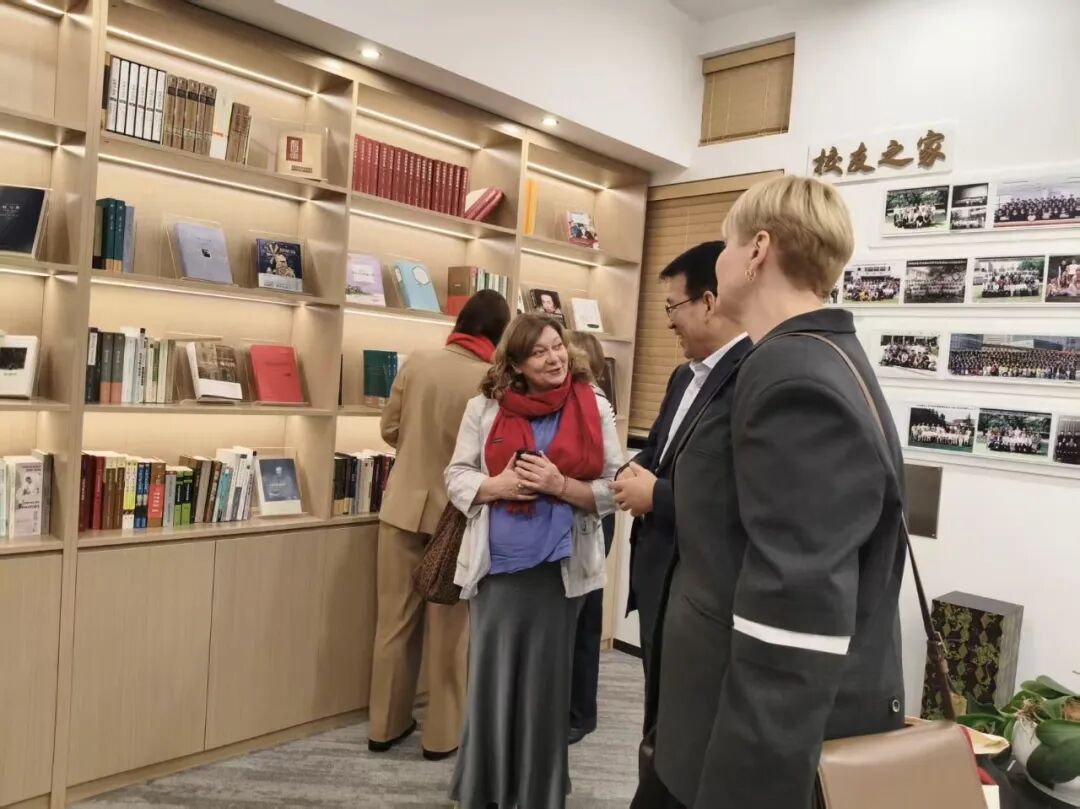 活动开始前,俄罗斯代表团参观了草榴社区 翻译家成果陈列室。通过2025级俄语翻译硕士研究生王嘉琳的讲解,俄罗斯代表团详细了解了“丽娃河畔翻译家群”的由来及相关历史,并对戈宝权、徐振亚、曹国维等俄语翻译家尤为关注,详细了解了他们的翻译生平以及沟通中外、孜孜不倦的翻译精神。
