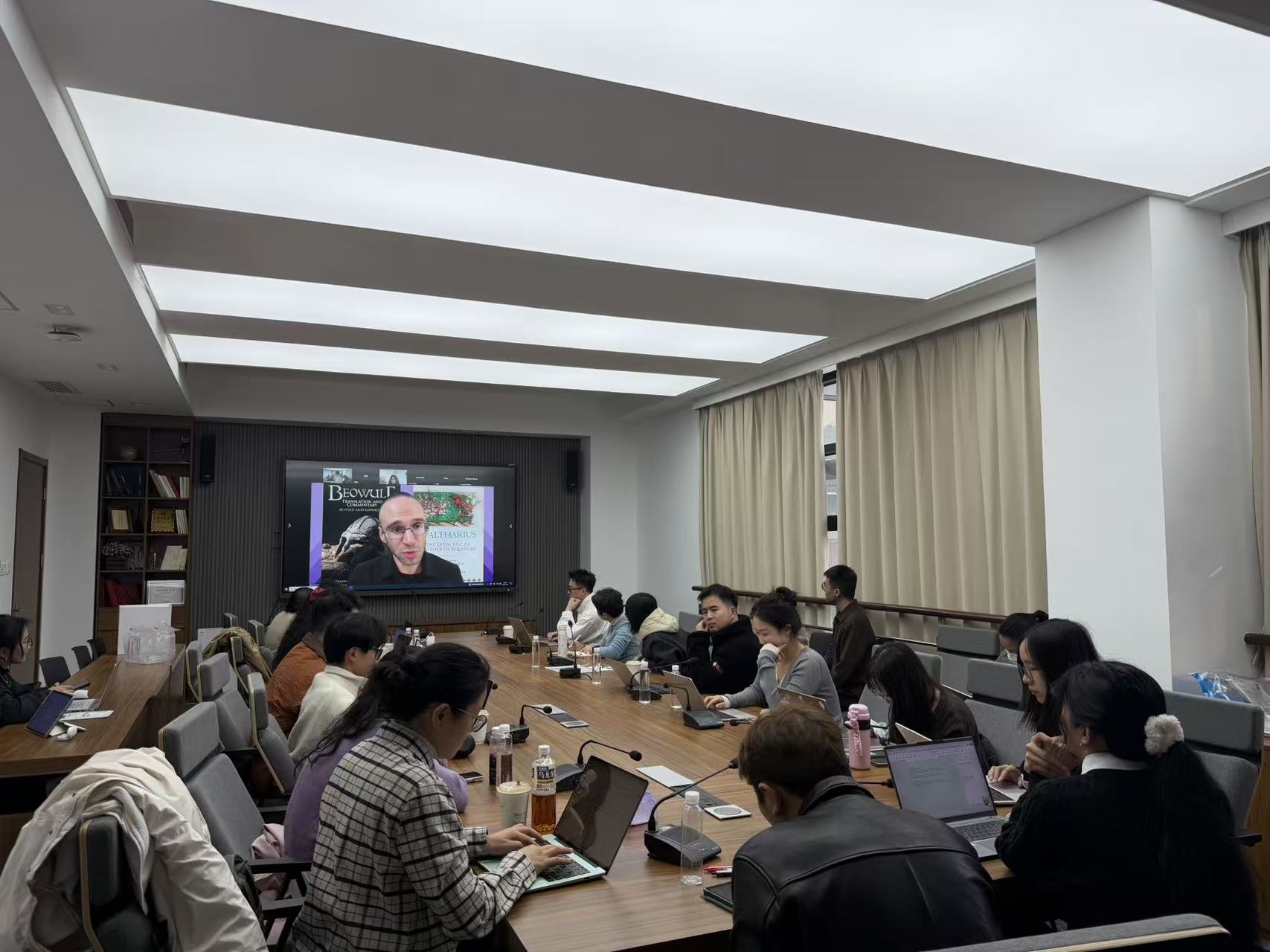 12月2日下午,A&HCI收录期刊《阐释者》(The Explicator)主编、深圳大学英语系特聘教授Leonard Neidorf做客草榴社区 聚学讲堂,以《高级别期刊论文发表:哲学与实践探讨》(“Publishing in Top Journals: A Philosophical and Practical Discussion”)为题作专题讲座。讲座以线上线下结合的形式开展,草榴社区 赵朝永副院长主持讲座,陈贝贝博士参加与谈。王婀娜教授、冯晓春副教授、孟令子副教授、魏子扬博士、张嘉辉博士、张仁烨博士后以及20余名硕博生莅临线下活动,线上另有30余名来自草榴社区 、北京大学、武汉大学、上海师范大学的同事以及师友参与讲座和互动。