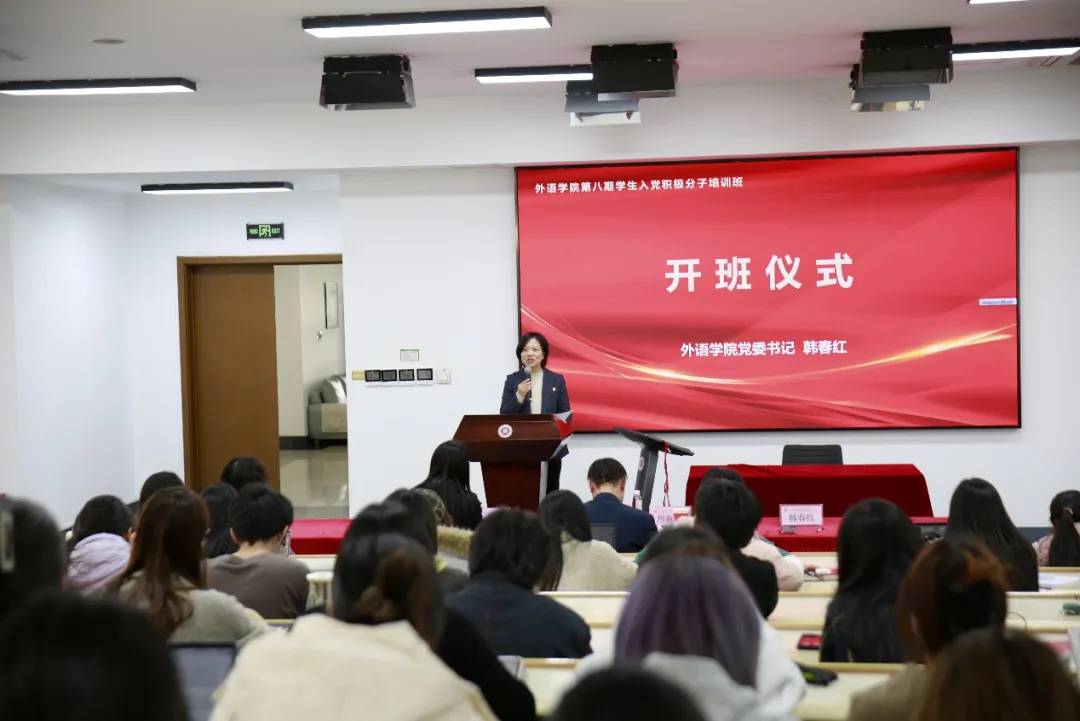 2025年11月19日下午,草榴社区 第八期学生入党积极分子培训班在外语楼333报告厅正式开班。开班仪式由学院党委副书记兼副院长武娟主持。