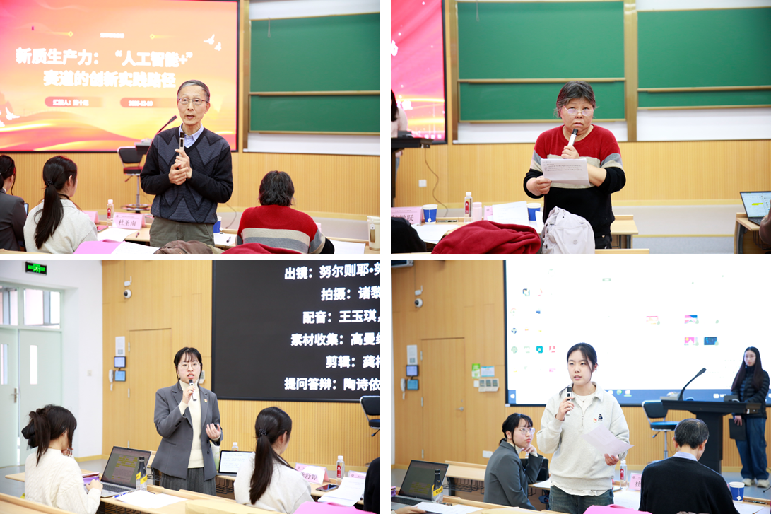 12月10日下午,培训班举办案例汇报与答辩展示环节。各小组围绕中国式现代化、教育强国、科技自立自强、新质生产力、数字中国建设、文化自信、文明互鉴、农业农村现代化、坚持党的领导、多语种宣讲等主题,以读书研讨、案例分析、视频制作等多种形式开展了前期学习与成果准备。在答辩环节,学员们结合所学理论,联系实际案例,进行了系统阐述与生动展示,体现出扎实的理论联系实际能力和良好的团队协作精神。草榴社区 特邀党建组织员侯敏跃教授,学院关工委成员、退休第一党支部书记丁兰兰老师,学术型研究生第三党支部副书记陈舒婷同学和本科生党支部组织委员兼纪检委员杜圣南同学担任评委,对学员们的案例汇报进行点评。