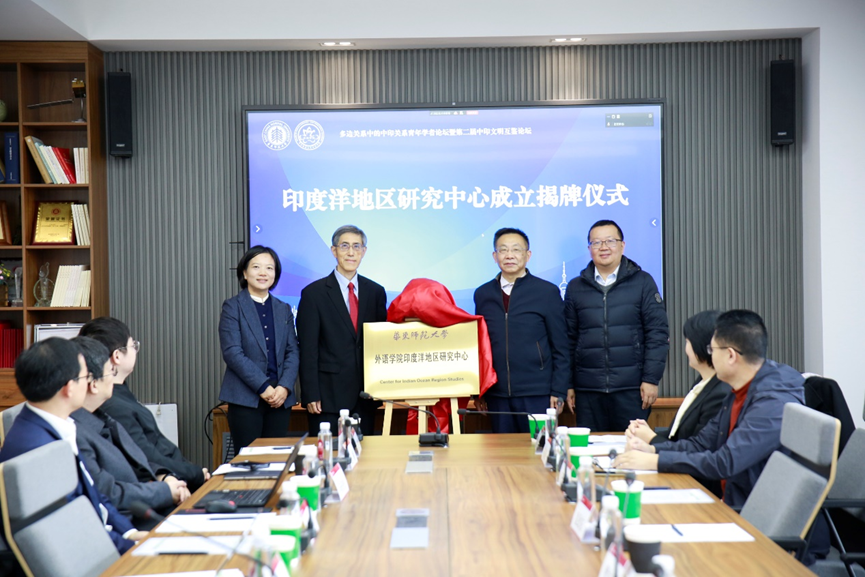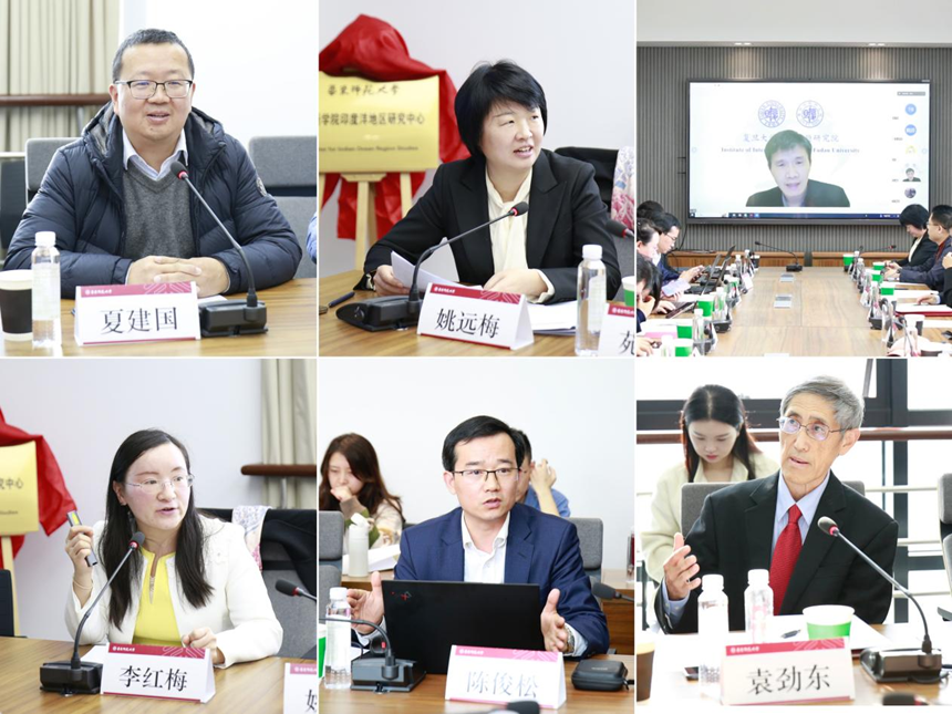 曹友谊、袁劲东和华东师大区域国别研究院执行院长夏建国、草榴社区 党委书记韩春红共同为“印度洋地区研究中心”揭牌。开幕式由韩春红主持。