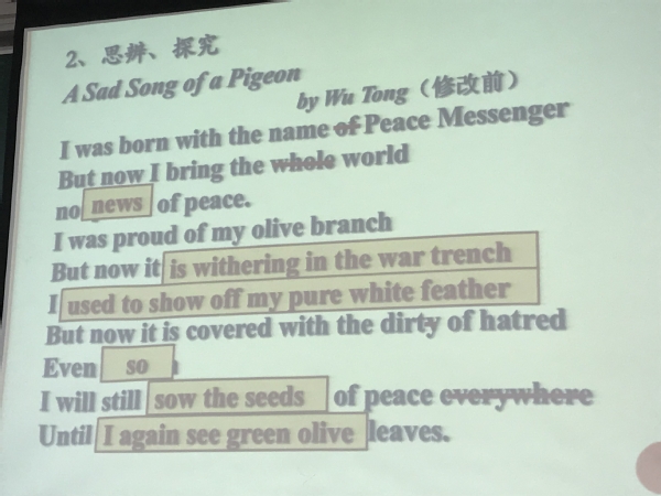 作为英语特级教师,刘砚老师在英语的教和研方面有很深的造诣,并指导过我系许多师范生的教育见习和教育实习。刘砚老师从校本课程目标、课程方案、课程实施、课程评价等方面系统阐述了校本课程的设计,并结合具体的学生诗歌写作案例和教师字斟句酌的指导,让我们体会到了诗歌写作教学的魅力以及刘砚老师对英语教学的执着追求。