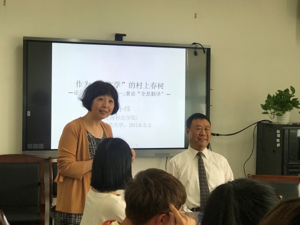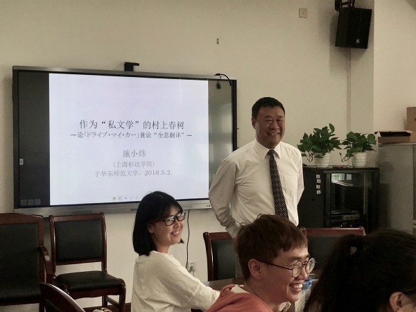 举办,特邀专家为上海杉达学院施小炜教授以《作为私文学的村上春树——论Drive My Car兼及全息翻译》为题,介绍了“私文学”、“公文学”、“全息翻译”等一系列全新的概念,带领同学们领略到了文学翻译的奥义所在。讲座由尹松老师主持,日语系1-3年级、研究生1年级以及部分老师参加了讲座。